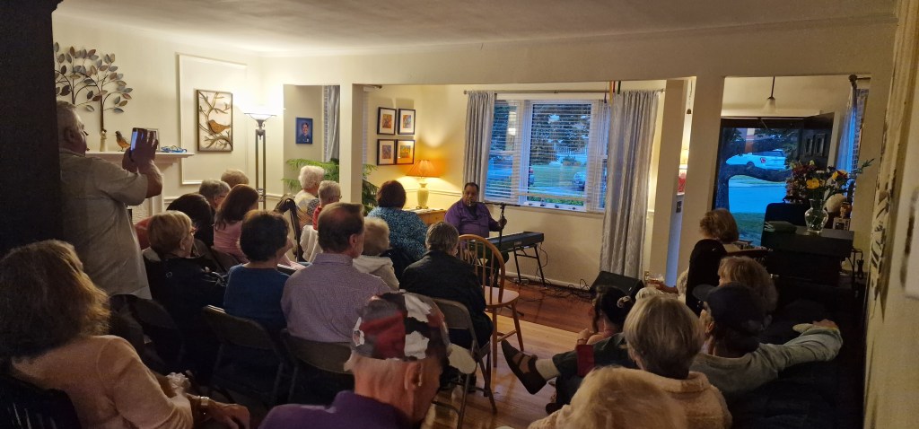 On a warm May evening with rain forecast Daryl led the audience in a history of Boogy Woogy music. It was entertaining, it was lively, it was foot tapping great.