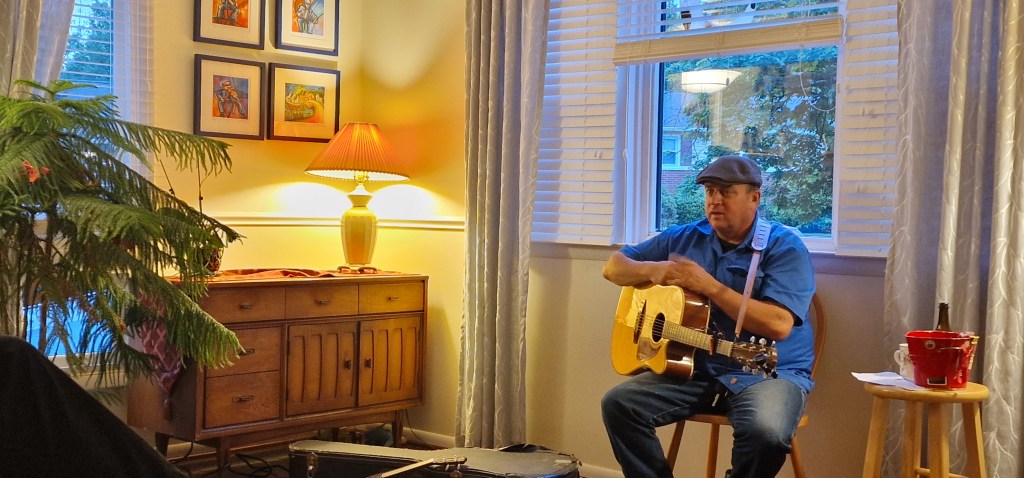 On a May evening in 2024, we gathered to listen to and singalong with Dino Delray. A new guest to our House Concerts on Longdale so an unknown in that sense.